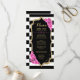 Menykort. Klassiskt svart vitt rosa design med falskt glitterguld. Blommig design med svarta och vita ränder, skrivstil och röda rosor. Perfekt för en elegant fest.