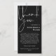 Tack för ett minneskort med två foton av ditt älskade på baksidan. På omslaget, under Tacken skriven i ett handskript, lägger du till det tack du skriver i vitt mot svart bakgrund.