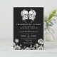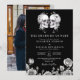 Denna svart-vita 'tills döden skiljer oss åt' gotiska blomstermotiv med dödskallar bröllopsinbjudan kan anpassas med din information i modern typografi och ett speciellt foto på baksidan. Designad av Thisisnotme©