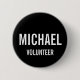 Svart Volunteer-märke med namn och titel i vitt fet sans serif-teckensnitt på svart bakgrund. Även perfekt för praktikanter, besättning, personal, grupp, team med mera.