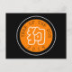 Anpassadets vita ideogram hund med dubblans orange och vita cirklar + svart text på vykort med anpassadets svarta bakgrund färg. Finns i 6 färg. Perfekt för kinesiska nyår under Hund 2018 eller födelsedag (människor födda under Hund Year).— "Hund (狗) är en av de tolv årscykler djur som förekommer i den kinesiska djurparken i samband med den kinesiska kalendern. År för Hund är associerat med 戌 för det sjunde Gren. Tecknet 狗 avser det faktiska djuret medan 戌 avser zodiakdjuret. (...) Personer som är födda inom dessa datumintervall kan sägas vara födda under "Hund år" och har dessutom följande grundläggande tecken: 14 februari 1934 - 3 februari 1935 = Wood Hund, 2 februari 1946 - 21 januari 1947 = Fire Hund, 18 februari 1958 - 7 Februari 1959 = Earth Hund, 6 februari 1970 - 26 januari 1971 = Metall Hund, 25 januari 1982 - 12 februari 1983 = Vatten Hund, 10 februari 1994 - 30 januari 1995 = Wood Hund, 29 januari 22 006 - 17 februari 2007 = Fire Hund, 16 februari 2018 - 4 februari 2019 = Earth Hund, 2 februari 2030 - 22 januari 2031 = Metall, 22 januari 2042 - 9 februari 2043 = Hund - Wien kipedia