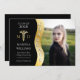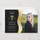 Fira din favoritexamen i läkarutbildning med den svarta och guld-färgade fotodesignen "Student". Mallen har ett vågigt utseende på den lämnat sidan med ord "Student" på guld vågigt bakgrund åtföljd av en konturkadueus med guld-ton med platt guld "M" och "D" till lämnat och din student klassår, namn och skola i vitt. Utformning av Helgdag Hearts Designs (reserverade höger) med platshållarfoto kredit till Mike Austin via Unsplash.