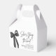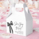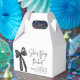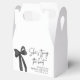 Lägg till en sofistikerad touch på din bröllopsfest med våra presentaskar "She's Tying the Knot" med svarta band. Med en chic svart bandbåge och elegant minimalistisk design är dessa presentaskar perfekta för att innehålla söta godsaker, små presenter eller festerfären. Idealiskt för coquette-, svart-vit- eller moderna bröllopsteman. Mallen är helt redigerbar - anpassa med din egen text för att matcha din händelse. Skriv ut, montera och skapa en snygg detalj som dina gäster kommer att älska!