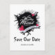 Black Bläck stänk och Rosa ros Gothic Spara Vår Datum, ett unikt svart bläck stänk och rosa vattenfärgshjärta och datum på banderollen, en vacker gotisk tema design