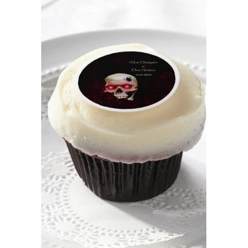 Svarta blomstermönster mörka gotiska dödskallar röda rosor - läskiga och skrämmande Halloween bröllopsplatskort.