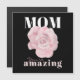Säg det som det är. En stor vattenfärgsblomma dominerar mitten av detta kort. I svart bakgrund är meddelandet "Mamma, du är fantastisk" inställt i stor modern typografi i vitt och matchande rosa.