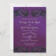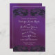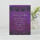 Svart blommigt snöre liknar design och djup lila bröllopsinbjudan fet och elegant med handskript stil, text i silver.