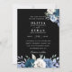 svarta bröllopsinbjudningar för vit och blå blommi inbjudningar
