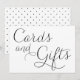 Vackra kort och presenttavla med svart Dainty-skrift och prickmönster. Detta platta kort är perfekt för bröllop och liknande evenemang. Finns i andra färger.