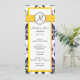 Bröllopsmenykort med svart och vit damaskmönster och gul accentfärg med monogram. På ena sidan har kortet detaljer om din bröllopsfest. På den andra sidan finns bröllopsmenyn. Anpassa med ditt monogram och namn och bröllopsdatum och hela din bröllopsmeny och aktiviteter. Av Elke Clarke ©2011 Anpassa med din information och färger