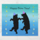 Denna anpassade ölflasketikett är gjord i tre olika nyanser av blått med två leende svarta festbjörnar som bär randiga hattar med gulda tofsar och rader av ljusgula stjärnor på varje sida. Anpassa din text med mallen.