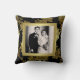 Fira minnet av en guldbröllopårsdag med denna eleganta dekorativ kudde för bröllopsdagen för mönster 50th för svarten och för guld blom- damastast med FOTOET. Det skräddarsy lätt med din egna information. E-posten niteowlstudio@gmail.com, om du behöver hjälp som skräddarsy denna minnessakfotogåva, kudder.
