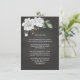Romantiska vita blommor och grönt löv svarta detaljförslutningskort.