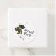 Rustik och gotisk halloween-temat bröllopsförmån märkre med illustration av svart ro på vit bakgrund.