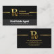 En svart och grått-skiktad design framhävs av en faux-guld-linje nära överkanten. På basen finns en mörk-grått-kolumn som innehåller din befattning och kontaktuppgifter. Över överst finns en guld brev-R-logotyp som du kan använda. brev-R kan elaket "hertor", "real gods" eller bara möjligen ditt namn initialer. Förutom den här logotypen finns din prestigefyllda namn och en slogan under. Du kan ändra slogantexten till kostym som tjänsten behöver.