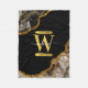 Svarta & Guld Agate Geode Glitter Monogram Fleecefilt