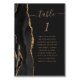 Det moderna kortet för bordsnummer i bröllop, som är lämnat kant i eleganten, har en svart vattenfärgad agate i gräns som trimmas med faux guld glitter. Ord "bord" visas i handskriftsskriptet guld-färgad på en bakåtriktad bakgrund. Lägg till namnen för de gäster som tilldelats varje bord.