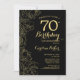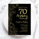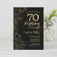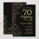 Svarta Guld-Blommigten 70:e Födelsedagsfest inbjudan. Minimalistisk modern design med botaniska konturaccenter för teckning, faux guld-folie och typografi-skript. Enkel inbjudan-kortsperfekt för trendig för en snyggt kvinna på dagen firande. Kan anpassas till vilken ålder som helst. Skrivna Zazzle-inbjudningar eller digital utskrivbar mall för omedelbar nedladdning.