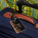 Svarta guld glitter droppar i monogram namn bagagebricka