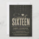 Den här fina, söta 16 födelsedagsfest inbjudan-designen från The Spoted Olive™ har en svart bakgrund med en bild av glatt gems och ord "Sweet sixteen" med stilistiska typeset som innehåller ord 16, fyllda med en bild av guld glitter. OBSERVERA: DEN HÄR KONSTRUKTIONEN INNEHÅLLER ENDAST EN SKRIVEN BILD AV GLITTER; DET FINNS INGEN FYSISK GLITTER SOM ANVÄNDS ELLER INGÅR I; DET FINNS INGA EMBELLISTER. DET HÄR ÄR EN FLAT UTTRYCKD INBJUDAN.Copyright 2013-Present | Spoted Olive™ | Alla reserverade Höger