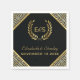 Svarta, guld grekiska nyckel och bröllop-papper napkin med larekrans med initialer och gräns med grekisk nyckel eller Meander eller grekisk faret mönster gräns i guld och svart. Den här eleganten är vintagens utformning i den gamla världen en perfekt för ett grekiskt och/eller grekiskt bröllop, möhippa, mottagning, förlovning eller party på årsdagen, oavsett var det tar ställe i Grekland eller någon annanstans. Det är en fullständig mall för anpassade i en uppsättning bröllop. Det kan också göras på grekiska eller på två språk.