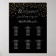 En klassisk svart bakgrund. Dekorerad med guldhjärtan. Anpassa och lägg till namn i bruden och brudgummen, lägg till dina gäster namn. Vit text.