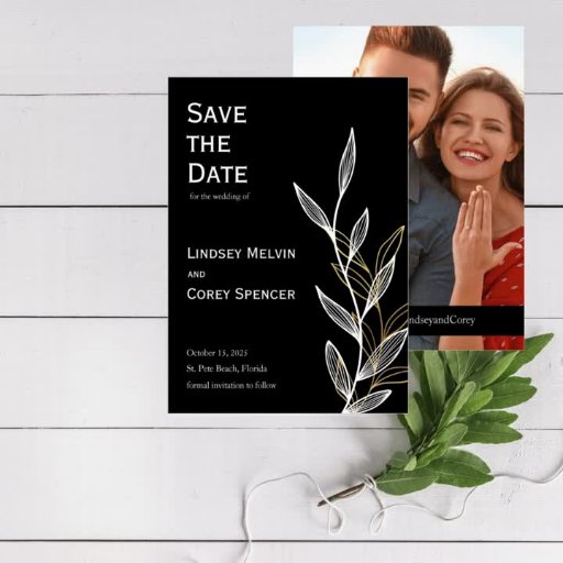 Anpassa det här snyggt designade guld löv bröllop OSA-kortet. Lägg till information och QR-kod.