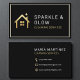 Befordra ditt städning företag med det här minimalistiska svarta och guld-affärskortet som har en elegant, modern layout och fet professionell design. Perfekt för städning i hemmet, hushållning och hjälporganisationer. Det här kortet belyser ditt företags namn, taggar och kontaktuppgifter i ett rent och lättläst format. Den slående svarta bakgrunden parad med guld-accenterna förmedlar sofistikering, tillförlitlighet och professionalism - samtidigt som anpassadet och redot för tryckning bibehålls.