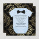 Svarta Guld och blå Damask Pojke Shower Inbjudningar