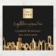 En svart bakgrund, med en faux guld city skyline som dekoration. Anpassa och lägg till din logotyp och en text på framsidan. Golden brev mousserande vin för dina kunder - grattisar på ett nytt hem.