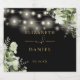 Eleganta gröna blomsterljusslingor, svarta och gyllene bryllapsöl-etiketter, personifierade med era namn och speciella bröllopsdatum. Designad av Thisisnotme©