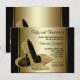 Eleganta svarta och gyllene glitter höga klackar för kvinnor 30-års 35-års 40-års 45-års 50-års 55-års 60-års 65-års 70-års 75-års födelsedagsfest inbjudan. Denna eleganta svarta och gyllene födelsedagsinbjudan kan enkelt anpassas för din fest eller ditt evenemang genom att lägga till dina evenemangsuppgifter, typsnitt, teckenstorlek och färg samt formulering.