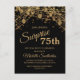 75-årsdag inbjudan för kvinnor med glittrande guldsträngljus och gnistrande bokeh på en djärv svart bakgrund. Eftersom texten är anpassningsbar, är denna inbjudan utformad för en dam som firar vilken födelsedag som helst. (18:e, 21:a, 30:e, 40:e, 50:e, 60:e, 70:e, 80:e, 90:e, 100:e....eller vilken ålder som helst). Text, teckensnitt och formulering är helt anpassningsbara. Kontakta oss för hjälp med anpassning eller matchande produkter.
