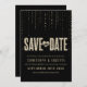 Denna fina design för "spara datum"-meddelande av The Spotted Olive™ har en svart bakgrund med en bild av glänsande ädelstenar och orden "Save The Date" stilfullt typsatta och fyllda med en bild av guldglitter. OBS: DENNA DESIGN HAR ENDAST EN UTTRYCKT BILD AV GLITTER; DET FINS INGET FYSISKT GLITTER SOM ANVÄNDS ELLER INGÅR; DET FINS INGA UTSMYCKNINGAR. DETTA ÄR EN PLATT UTTRYCKT INBJUDAN. Copyright 2013-Nutid | The Spotted Olive™ | Alla Rättigheter Reserverade