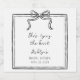 Fira din speciella dag med vår etikett för bröllopsduschflaska med svart handritad text "She's Tying the Knot". Denna charmiga, anpassningsbara mall har detaljer i form av ömtåliga handritade band som skapar en romantisk och inbjudande atmosfär för din bröllopsdusch. Perfekt för att sätta tonen för din glädjefyllda tillställning, denna inbjudan låter dig lägga till din personliga touch, vilket gör den verkligen unik.
