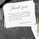 Ett vintage-kalligrafiskript markerar det här bröllop-tackkortet. Kortets baksida har en mjuk, svart bakgrund med guld stänk-prickning.