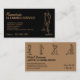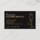 Denna snygga och moderna visitkortsdesign har en svart bakgrund med en subtil struktur och en minimalistisk illustration av en professionell manlig städare i aktion. Texten är i en fet och ren vit typsnitt, vilket gör den lätt att läsa och professionell. Perfekt för ett städnings- eller husstädningföretag, förmedlar denna design tillförlitlighet, pålitlighet och uppmärksamhet på detaljer.