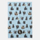 Kökshandduk med svarta katters design och monogram initial. Söta svarta kattungar och katter täcker denna handduk som har en blekblå färg. Inkluderar en enkel initial över en rund, svart cirkel nära botten. Gör en vacker present till alla kattälskare, eller svart katt ägare, man eller kvinna.