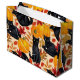 Handmålad mönster med svarta katter, pumpor och höst löv. Blanda mediefärger - digital målning och vattenfärgning.