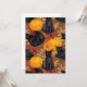Handmålad mönster med svarta katter, pumpor och höst löv. Blanda mediefärger - digital målning och vattenfärgning.