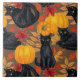 Handmålad mönster med svarta katter, pumpor och höst löv. Blanda mediefärger - digital målning och vattenfärgning.