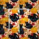 Handmålad mönster med svarta katter, pumpor och höst löv. Blanda mediefärger - digital målning och vattenfärgning.
