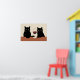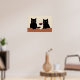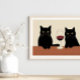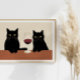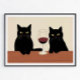 En lekfull och genomtänkt design som blandar modern minimalism med en kärlek till kattkamratskap och livets enkla nöjen. Illustrationen visar två snygga svarta katter som sitter nyfiket bakom ett enda glas rött vin, mot en varm neutral bakgrund och ett rustikt träbord.