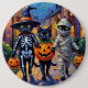 Svarta katter Trick-or-Treating in Halloween Costu Knapp