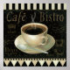 © Daphne Brissonnet / Vild Apple. En svart kopp av hett kaffe med såpa och teaspoon. Fransk ord kan ses på den svarta bakgrunden.