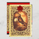 Elegant och klassisk vintage monogramdesign i röda och gula färger, blomsterlika virvlar med en rolig kråka som spelar poker,
