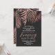 Elegant, chic och modern tropisk strandfatik som tryckts i ro handflatan träd i guld på svart löv med faux tryckt ro guld typografi av sekvin, inbjudningar till kvällsbröllop. Den här klassiska och sofistikerade designen är perfekt för par med trendig och snyggt. Anpassa med ditt eget meddelande på framsidan och ett anpassat monogram på baksidan. All fotoutskriftsdesign.