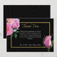 Det här tackkortet är definitivt fyllt med glam och glitz. Bakgrunden är svart med faux guld glitter mönster, omgiven av faux guld glitter ram och rosa och guld ro. Svarta mitten krymper pärlor pappert, men köpare kan välja en annan papper typ efter att ha anpassat den och innan de köper kortet. Du kan använda det inkluderade meddelandet eller redigera det för att lägga till ditt eget meddelande och din personliga beröring.