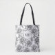 Svarta monogramm blomstermönster eleganta botanisk tygkasse