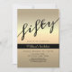 Enkel, modern, trendig-kalligrafi, elegant svart och guld 50-årsinbjudan.